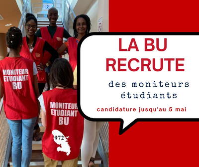 Étudiants en L3 / en Master, devenez moniteur étudiant à la BU du campus de Schœlcher ou de Fort-de-France - Postulez dès maintenant et jusqu'au 5 mai !