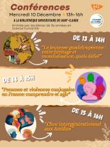 Dans le cadre du cours de séminaires et recherches supervisé par Mme Clara Palmiste, docteur en Histoire MCF à la Faculté Roger Toumson, les étudiants de L3 Humanités organisent trois conférences sur les thématiques suivantes :
